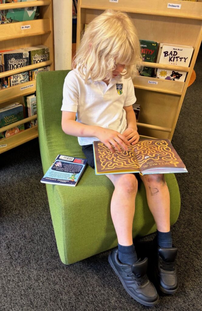 The SBS library is not a super quiet place! As our “Welcome” board reminds us, our library space is a place as much (or more!) for sharing as it is for “shushing.” Together we read, listen, laugh, explore, debate, discuss…and are transformed.