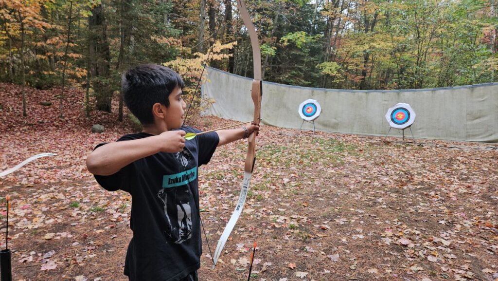 A Grade 6 student practices archery at Camp Kandalore during our morning activities